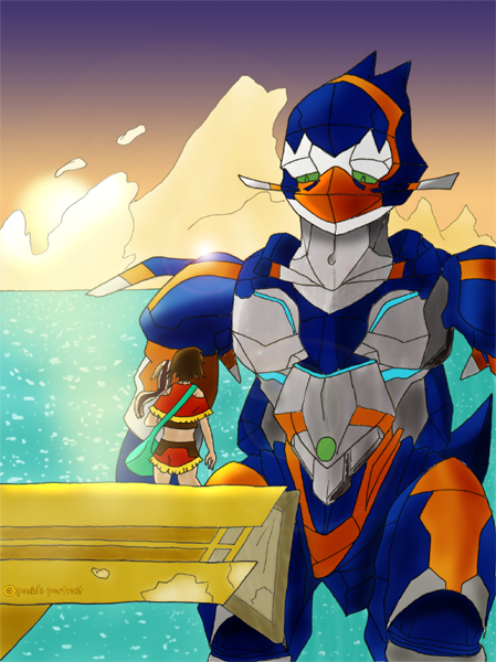 Without a doubt, Chamber as a penguin is one of the most terrifying creations I've ever put to paper. XD The design and color scheme are part copied directly from Chamber and part made up as I went along. I tried out varying effects on shadows from my norm at the shader stage, and I think it made this drawing come out rather unique. The bright yet brooding colors clash so strong against the goofy exterior look.