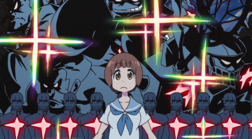 understand one another. In a sense this is the exact same message as Gurren Lagann. But KLK actually weaves its message into the visuals on screen and, in