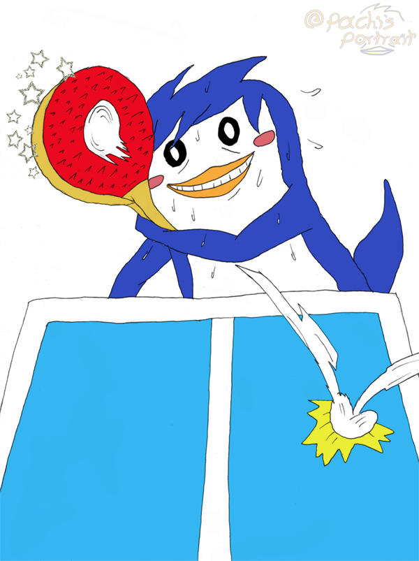 their bout that he prostrates himself to the very concept of ping pong, begging