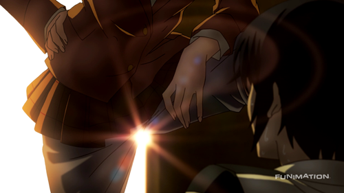 It's surprisingly fun and easy to watch all of this nonsense because the nature of the production purposefully distances itself from the viewer. The characters are helpless beyond belief and the set-up so unrealistic that you find yourself more readily believing literal fantasy anime. You're a conscientious observer watching monkeys slip on their own poo and grabbing each other's butts through stained glass. But let it not be said that Prison School is rote. I can't speak for the manga, but in the anime's runtime there isn't a single boob or butt grab to be found. Most of the promiscuity is creative, new scenarios you've never seen before. And for good reason - they're deplorable extremes. But never once is this depravity concocted for the benefit of the audience. To call what it employs 'fanservice' at all is tampering with the definition. I mean, I'm sure SOMEONE out their gets off to this stuff, but I've never met them. I imagine Hiramoto-sensei's intention is to bait his readers, DARING them to unzip their fly and jerk it out. "All you want is smut, huh? Well, try jacking off to THIS filth," I can picture him saying with a satisfied chortle.